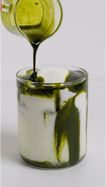 - 방법 : 말차를 푼 후 컵에 얼음을 채우고 우유와 함께 부어 시원하게 즐기기.