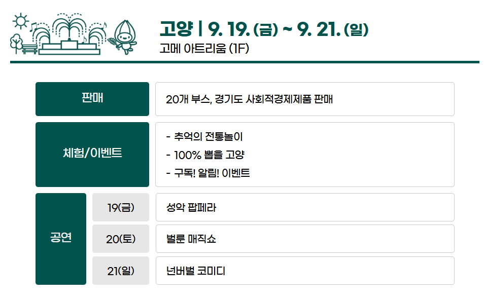 마지막으로 9월 19일부터 21일까지 스타필드 고양에서 행사가 열린다.